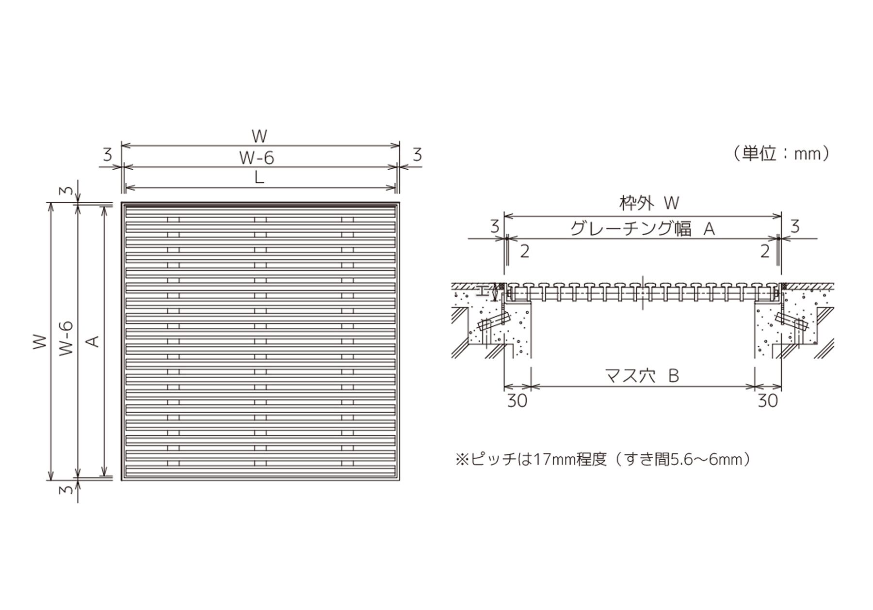 こちらの商品は、蓋と枠セットの価格となっております。こちらの商品を3枚以上をご希望のお客様はお問い合わせください。 Lアングル受枠(GSL-20:片面1mあたり¥5,250、コーナー加工1ヶ所¥2,000)もご用意しております。お気軽にご相談ください。上記の表記サイズ(L×W×H)でお調べになられる場合は添付画像の図面とサイズ表をご確認ください。グレーチングサイズと枠サイズを表記しております。また、規格品以外の寸法も承っておりますのでお気軽にお問い合わせください。