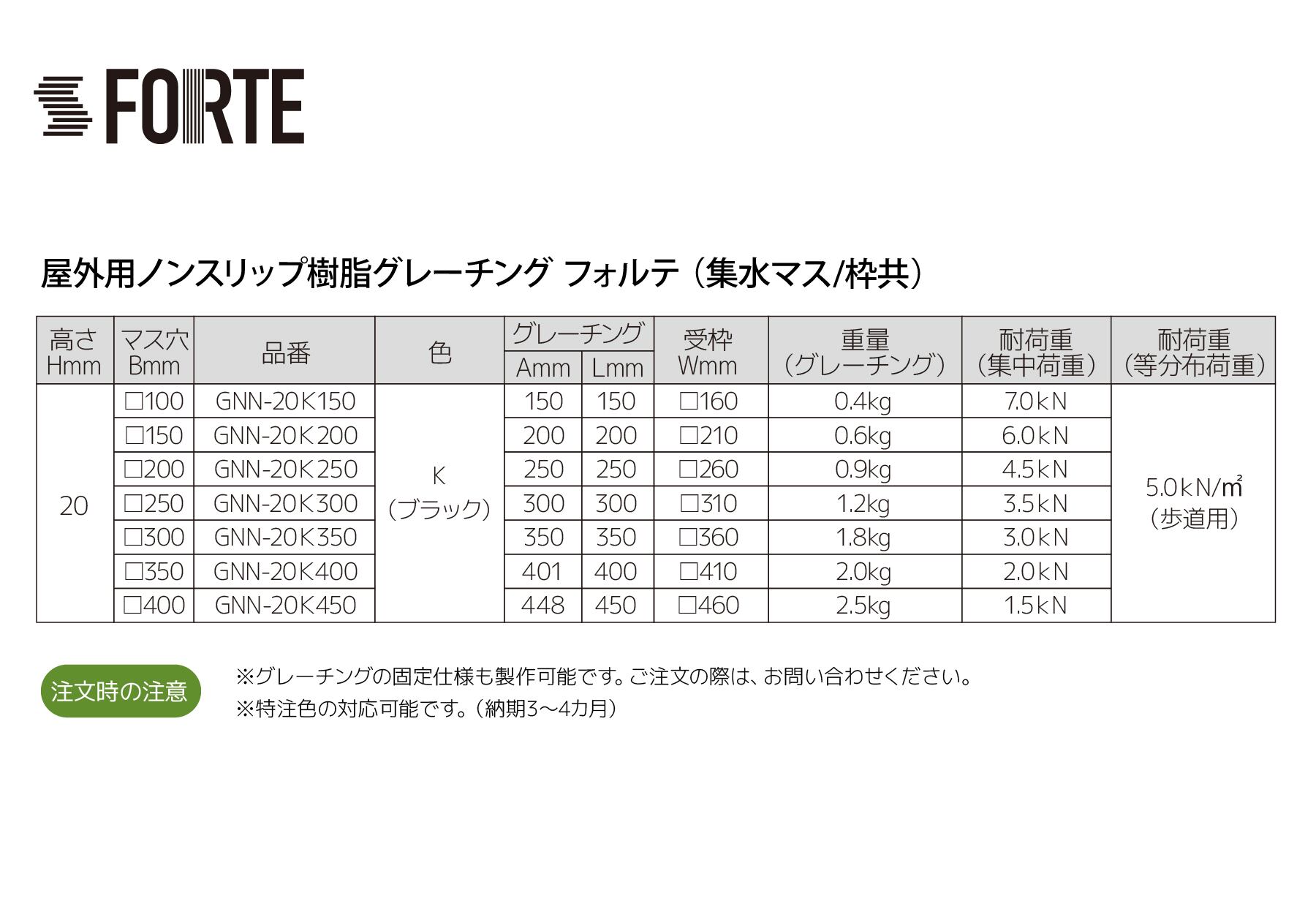 【GNN-20K400】屋内外兼用ノンスリップ樹脂グレーチング フォルテ(集水マス:枠共) 20×401×400